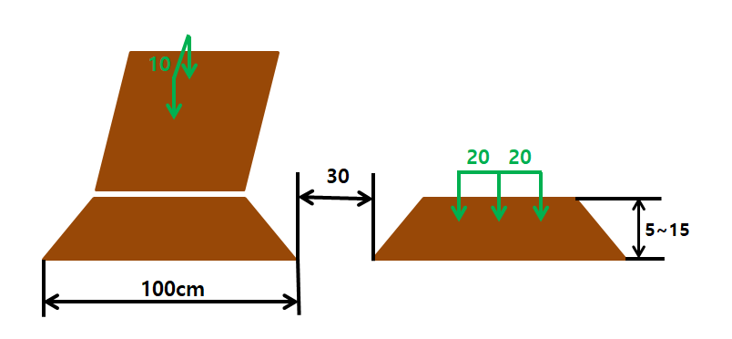 두둑 폭은 90~110cm가 적당하며 두둑 간의 거리는 30cm가 적당하다.