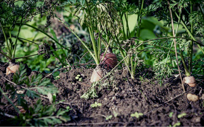 당근은 깊은 곳에 있지 않기 때문에 당근 캐는 작업은 적은 힘을 들이고 수확이 가능합니다.