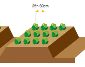 줄간격은 25~30cm, 포기간격은 14~20cm 정도로 주고 한 구멍에 3~4개 뿌려 줍니다.