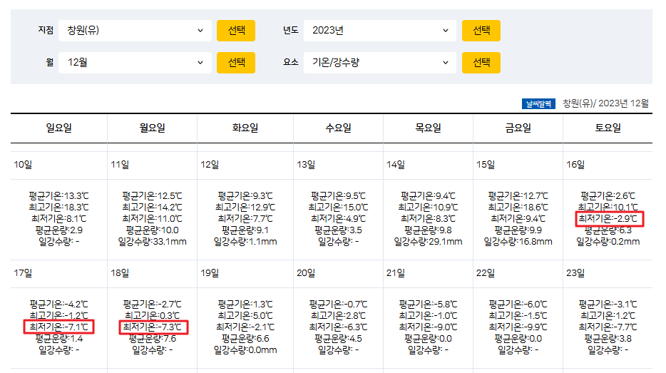 남부지역의 경우 작년 12월 1일 기준으로 영하 3℃ 아하의 온도가 시작되었지만 날씨가 다시 회복되었다가 12월 16일 기준으로 기온이 갑자기 내려가기 때문에 비닐 보양이나 다른 보양 대책이 되어 있다면 12월 15일까지 수확을 해도 무난합니다.