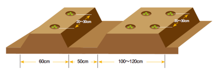 파종 간격은 20~30cm로 심으며 파종 깊이는 5cm가 적당합니다.