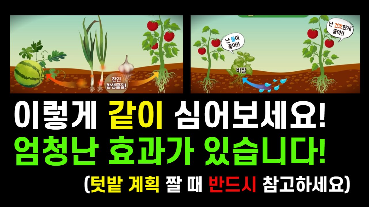 여기서 한 공간에 서로 도움이 되는 두 가지 작물을 조합하여 심는다면 병충해 감소와 수확량 증대 등의 효과를 볼 수 있습니다.