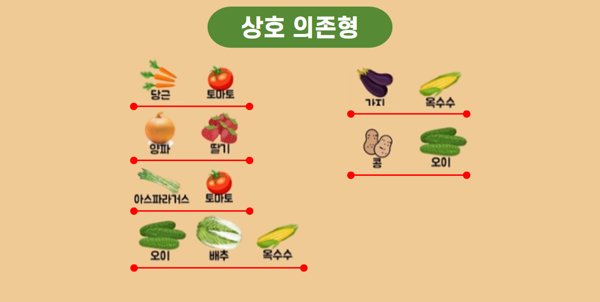첫 번째 유형은 생육촉진에 도움이 되는 작물 조합입니다.