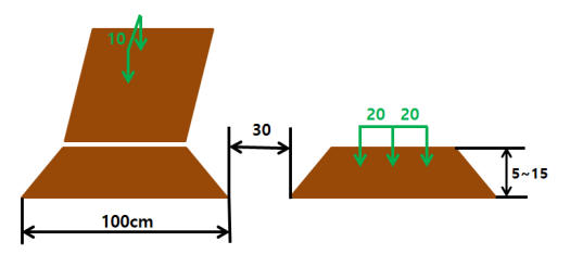 두둑 폭은 90~100cm가 적당하며 두둑 간의 거리는 30cm가 적당합니다.